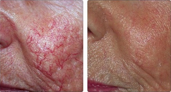 Facial vessels are effectively treated with laser with minimal downtime or risk in just a few quick, easy treatments: